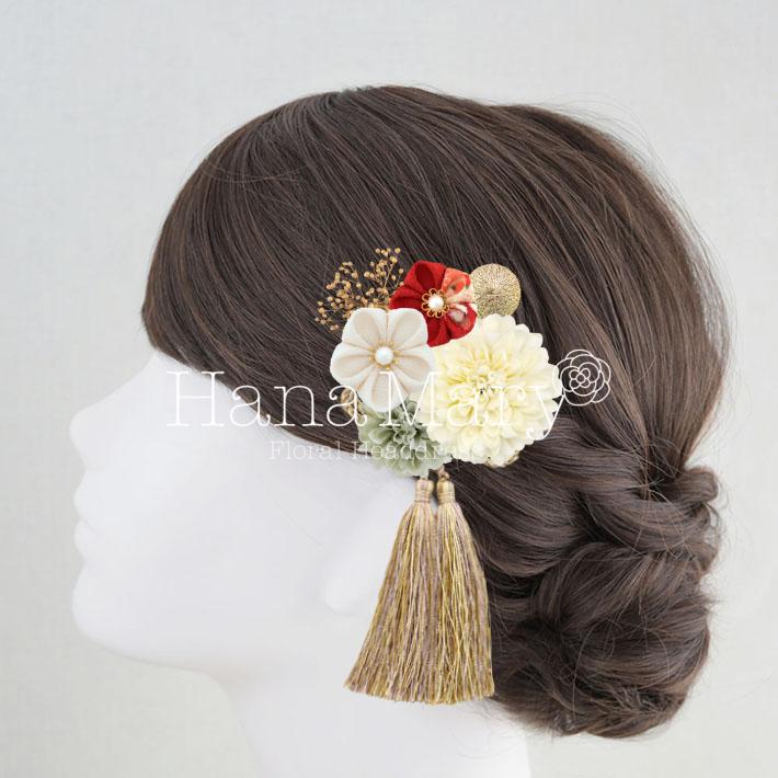 HanaMaryの髪飾りは生花をリアルに再現したアートフラワーと呼ばれるハイクオリティーな造花を使用しています。耐久性に優れ、成人式・卒業式やウェディングなどに何度でも繰り返し使用することができます。