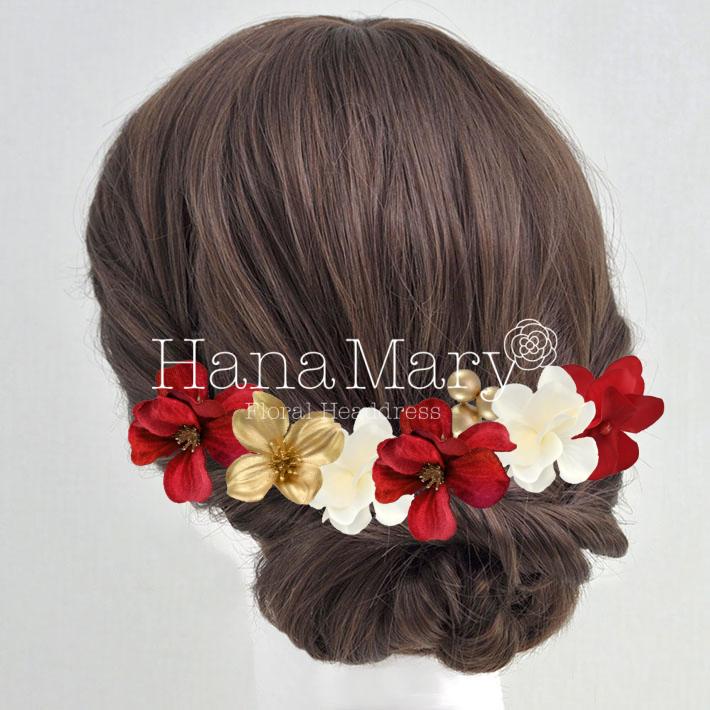 その日のヘアスタイルによって自由に一輪一輪配置できます。お花の数が多い場合でも、アメピンを追加して簡単にしっかりと固定できます。