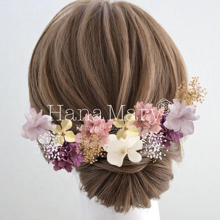 その日のヘアスタイルによって自由に一輪一輪配置できます。お花の数が多い場合でも、アメピンを追加して簡単にしっかりと固定できます。