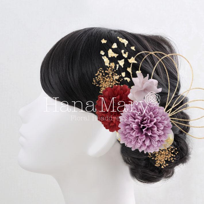 HanaMaryの髪飾りは生花をリアルに再現したアートフラワーと呼ばれるハイクオリティーな造花を使用しています。耐久性に優れ、成人式・卒業式やウェディングなどに何度でも繰り返し使用することができます。