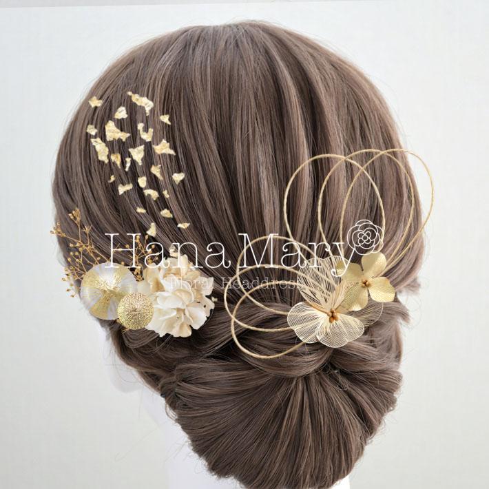 HanaMaryの髪飾りは生花をリアルに再現したアートフラワーと呼ばれるハイクオリティーな造花を使用しています。耐久性に優れ、成人式・卒業式やウェディングなどに何度でも繰り返し使用することができます。