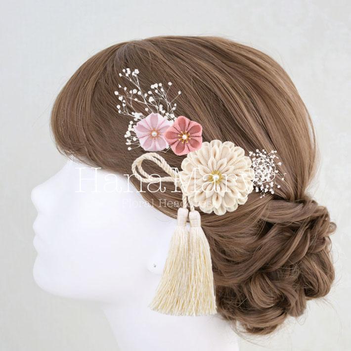 HanaMaryの髪飾りは生花をリアルに再現したアートフラワーと呼ばれるハイクオリティーな造花を使用しています。耐久性に優れ、成人式・卒業式やウェディングなどに何度でも繰り返し使用することができます。