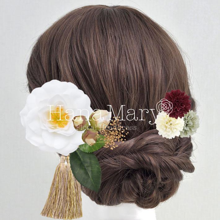 HanaMaryの髪飾りは生花をリアルに再現したアートフラワーと呼ばれるハイクオリティーな造花を使用しています。耐久性に優れ、成人式・卒業式やウェディングなどに何度でも繰り返し使用することができます。