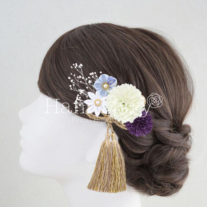 HanaMaryの髪飾りは生花をリアルに再現したアートフラワーと呼ばれるハイクオリティーな造花を使用しています。耐久性に優れ、成人式・卒業式やウェディングなどに何度でも繰り返し使用することができます。