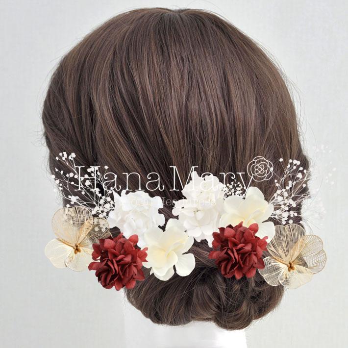 HanaMaryの髪飾りは生花をリアルに再現したアートフラワーと呼ばれるハイクオリティーな造花を使用しています。耐久性に優れ、成人式・卒業式やウェディングなどに何度でも繰り返し使用することができます。