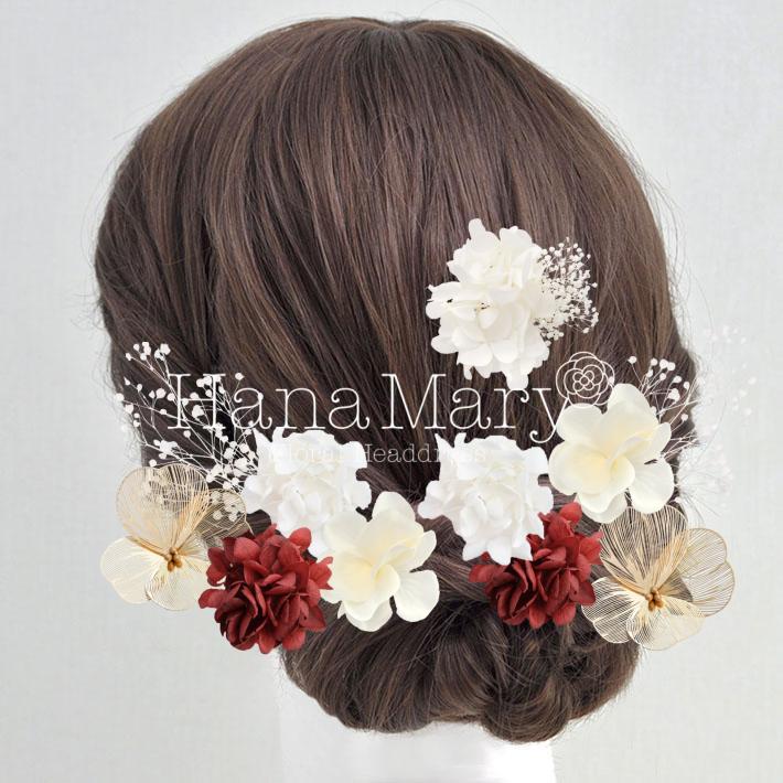 HanaMaryの髪飾りは生花をリアルに再現したアートフラワーと呼ばれるハイクオリティーな造花を使用しています。耐久性に優れ、成人式・卒業式やウェディングなどに何度でも繰り返し使用することができます。