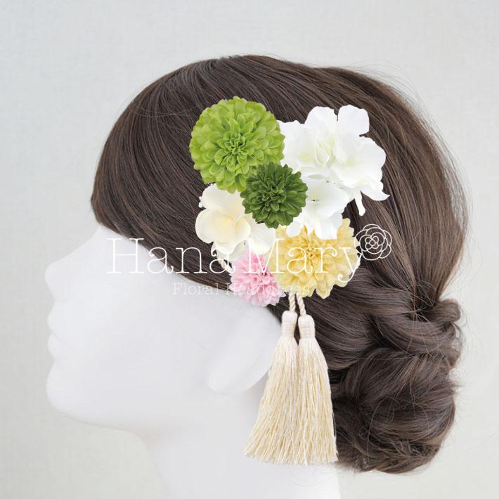 HanaMaryの髪飾りは生花をリアルに再現したアートフラワーと呼ばれるハイクオリティーな造花を使用しています。耐久性に優れ、成人式・卒業式やウェディングなどに何度でも繰り返し使用することができます。