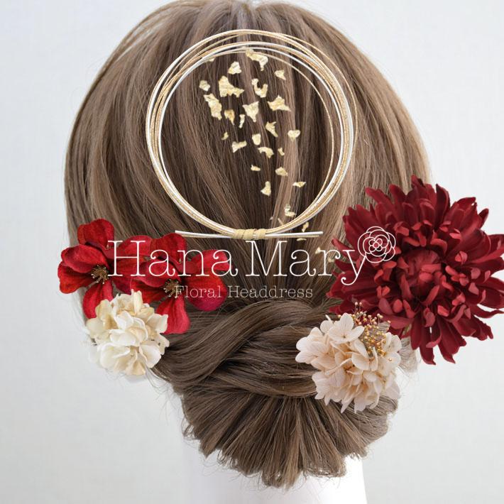 HanaMaryの髪飾りは生花をリアルに再現したアートフラワーと呼ばれるハイクオリティーな造花を使用しています。耐久性に優れ、成人式・卒業式やウェディングなどに何度でも繰り返し使用することができます。