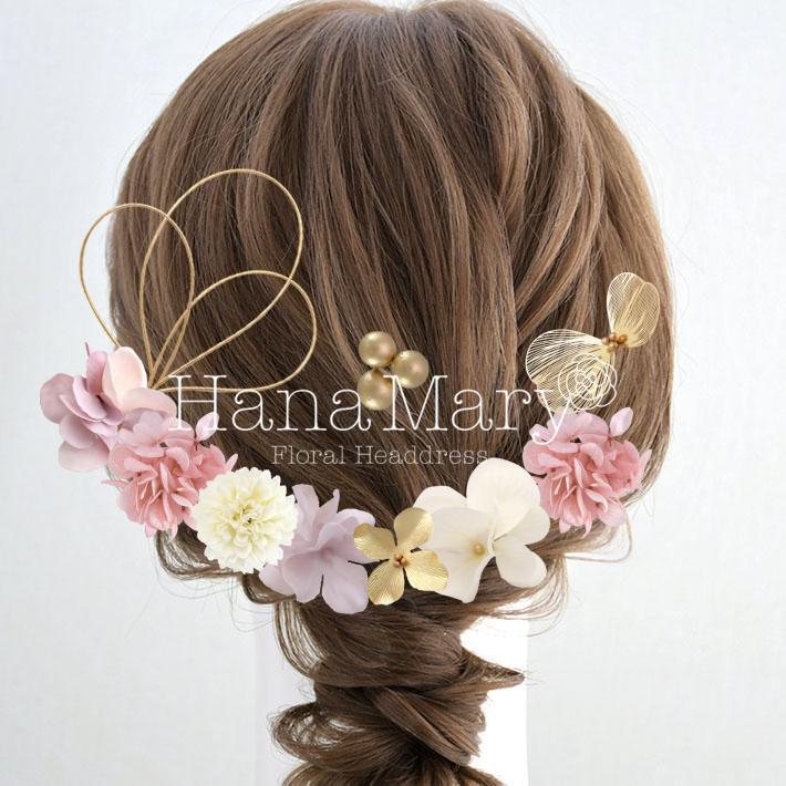 HanaMaryの髪飾りは生花をリアルに再現したアートフラワーと呼ばれるハイクオリティーな造花を使用しています。耐久性に優れ、成人式・卒業式やウェディングなどに何度でも繰り返し使用することができます。