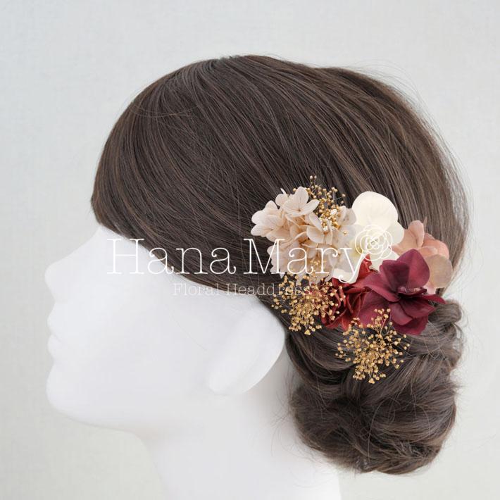 HanaMaryの髪飾りは生花をリアルに再現したアートフラワーと呼ばれるハイクオリティーな造花を使用しています。耐久性に優れ、成人式・卒業式やウェディングなどに何度でも繰り返し使用することができます。