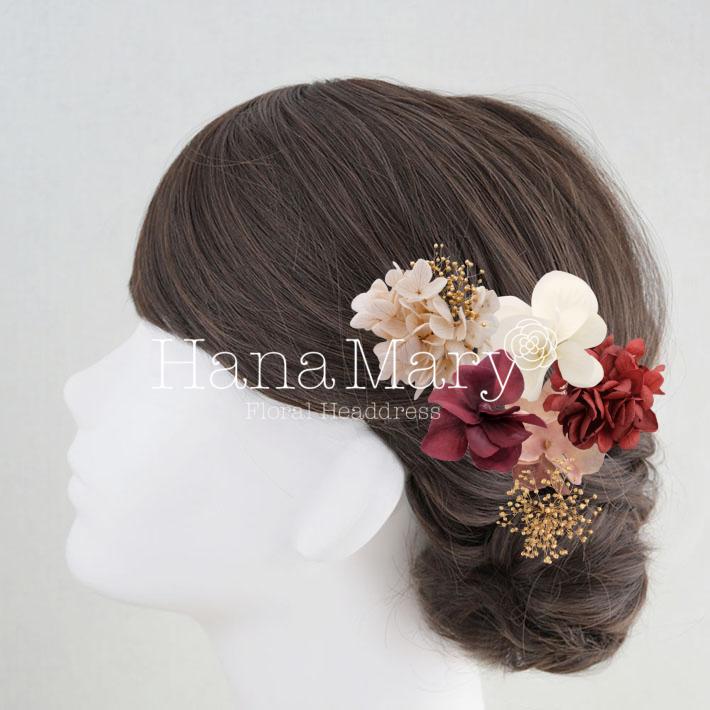 HanaMaryの髪飾りは生花をリアルに再現したアートフラワーと呼ばれるハイクオリティーな造花を使用しています。耐久性に優れ、成人式・卒業式やウェディングなどに何度でも繰り返し使用することができます。