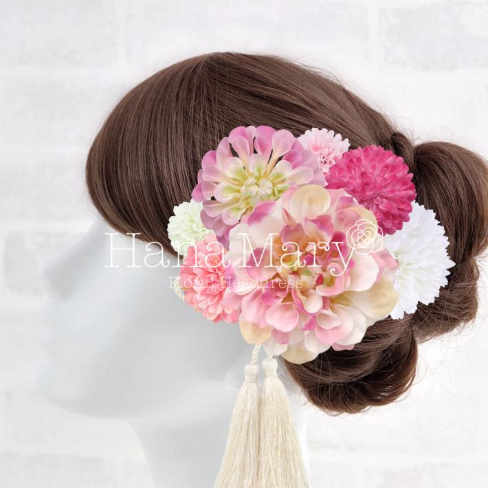 HanaMaryの髪飾りは生花をリアルに再現したアートフラワーと呼ばれるハイクオリティーな造花を使用しています。耐久性に優れ、成人式・卒業式やウェディングなどに何度でも繰り返し使用することができます。