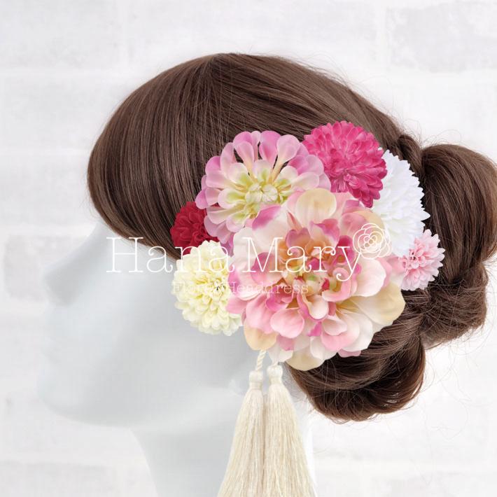 HanaMaryの髪飾りは生花をリアルに再現したアートフラワーと呼ばれるハイクオリティーな造花を使用しています。耐久性に優れ、成人式・卒業式やウェディングなどに何度でも繰り返し使用することができます。