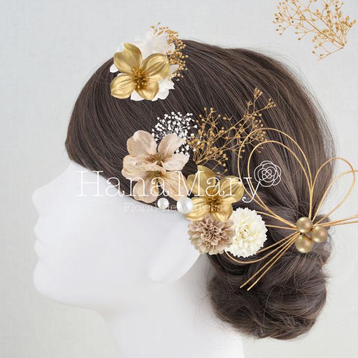 HanaMaryの髪飾りは生花をリアルに再現したアートフラワーと呼ばれるハイクオリティーな造花を使用しています。耐久性に優れ、成人式・卒業式やウェディングなどに何度でも繰り返し使用することができます。