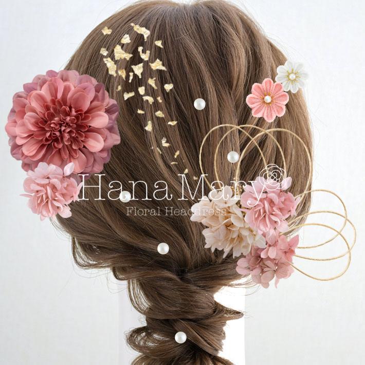 HanaMaryの髪飾りは生花をリアルに再現したアートフラワーと呼ばれるハイクオリティーな造花を使用しています。耐久性に優れ、成人式・卒業式やウェディングなどに何度でも繰り返し使用することができます。