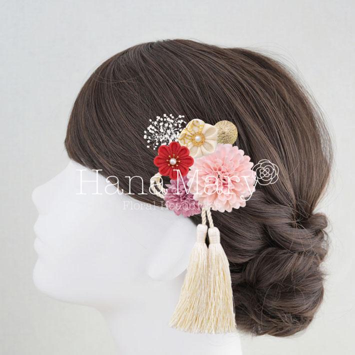 HanaMaryの髪飾りは生花をリアルに再現したアートフラワーと呼ばれるハイクオリティーな造花を使用しています。耐久性に優れ、成人式・卒業式やウェディングなどに何度でも繰り返し使用することができます。