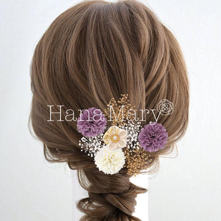 HanaMaryの髪飾りは生花をリアルに再現したアートフラワーと呼ばれるハイクオリティーな造花を使用しています。耐久性に優れ、成人式・卒業式やウェディングなどに何度でも繰り返し使用することができます。
