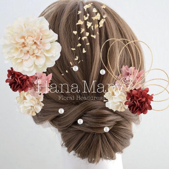 HanaMaryの髪飾りは生花をリアルに再現したアートフラワーと呼ばれるハイクオリティーな造花を使用しています。耐久性に優れ、成人式・卒業式やウェディングなどに何度でも繰り返し使用することができます。