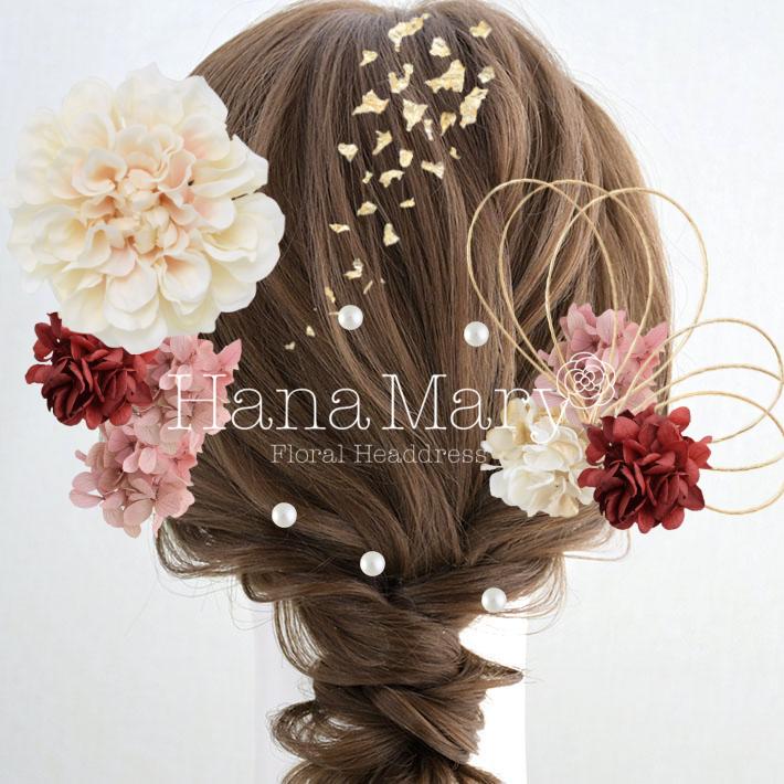 HanaMaryの髪飾りは生花をリアルに再現したアートフラワーと呼ばれるハイクオリティーな造花を使用しています。耐久性に優れ、成人式・卒業式やウェディングなどに何度でも繰り返し使用することができます。