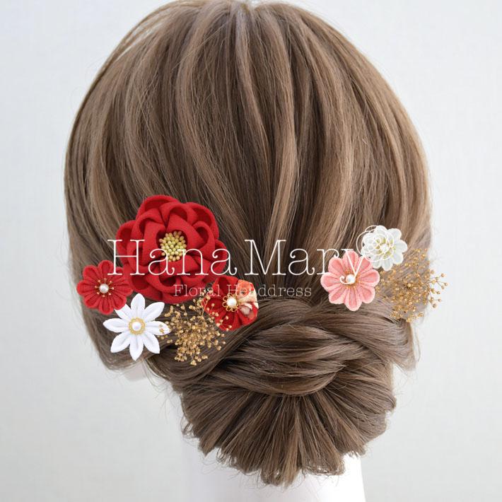 その日のヘアスタイルによって自由に一輪一輪配置できます。お花の数が多い場合でも、アメピンを追加して簡単にしっかりと固定できます。