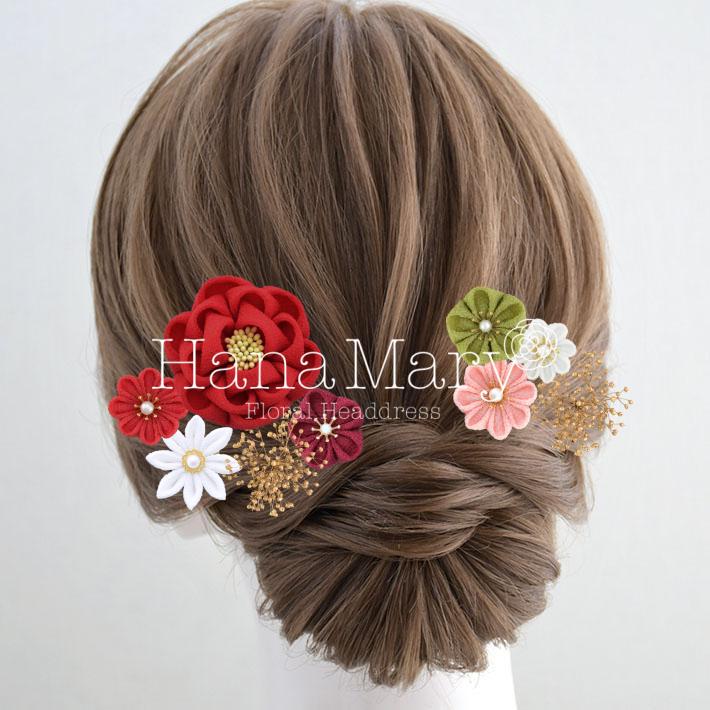 その日のヘアスタイルによって自由に一輪一輪配置できます。お花の数が多い場合でも、アメピンを追加して簡単にしっかりと固定できます。