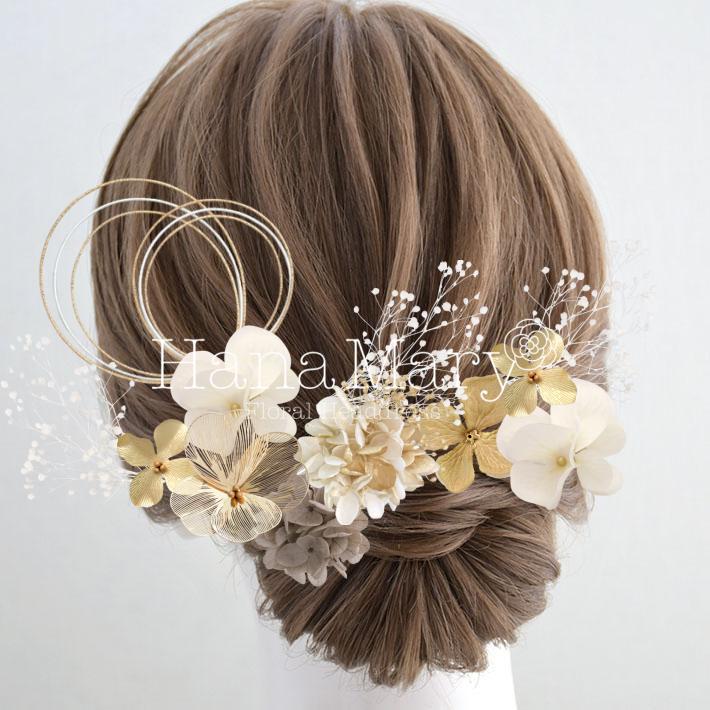 HanaMaryの髪飾りは生花をリアルに再現したアートフラワーと呼ばれるハイクオリティーな造花を使用しています。耐久性に優れ、成人式・卒業式やウェディングなどに何度でも繰り返し使用することができます。