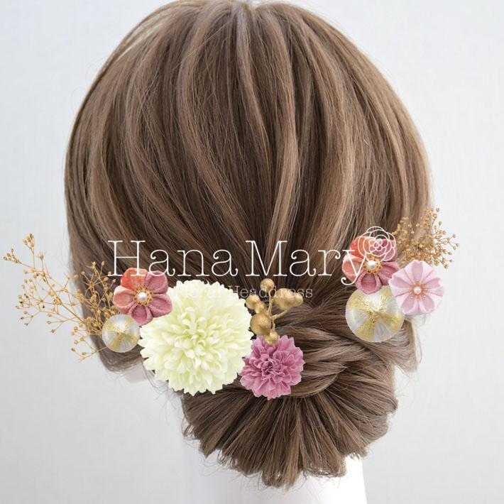 HanaMaryの髪飾りは生花をリアルに再現したアートフラワーと呼ばれるハイクオリティーな造花を使用しています。耐久性に優れ、成人式・卒業式やウェディングなどに何度でも繰り返し使用することができます。