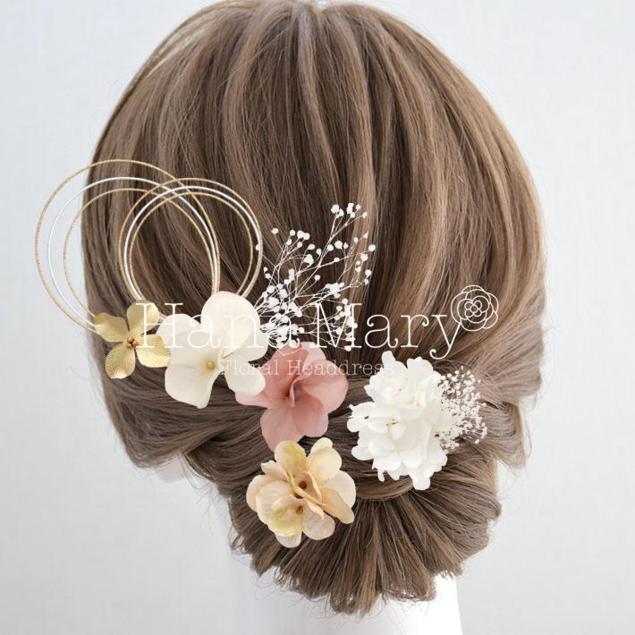 HanaMaryの髪飾りは生花をリアルに再現したアートフラワーと呼ばれるハイクオリティーな造花を使用しています。耐久性に優れ、成人式・卒業式やウェディングなどに何度でも繰り返し使用することができます。