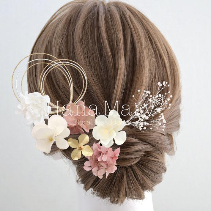 HanaMaryの髪飾りは生花をリアルに再現したアートフラワーと呼ばれるハイクオリティーな造花を使用しています。耐久性に優れ、成人式・卒業式やウェディングなどに何度でも繰り返し使用することができます。