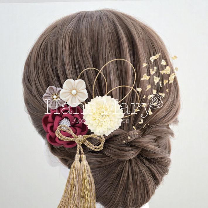 HanaMaryの髪飾りは生花をリアルに再現したアートフラワーと呼ばれるハイクオリティーな造花を使用しています。耐久性に優れ、成人式・卒業式やウェディングなどに何度でも繰り返し使用することができます。