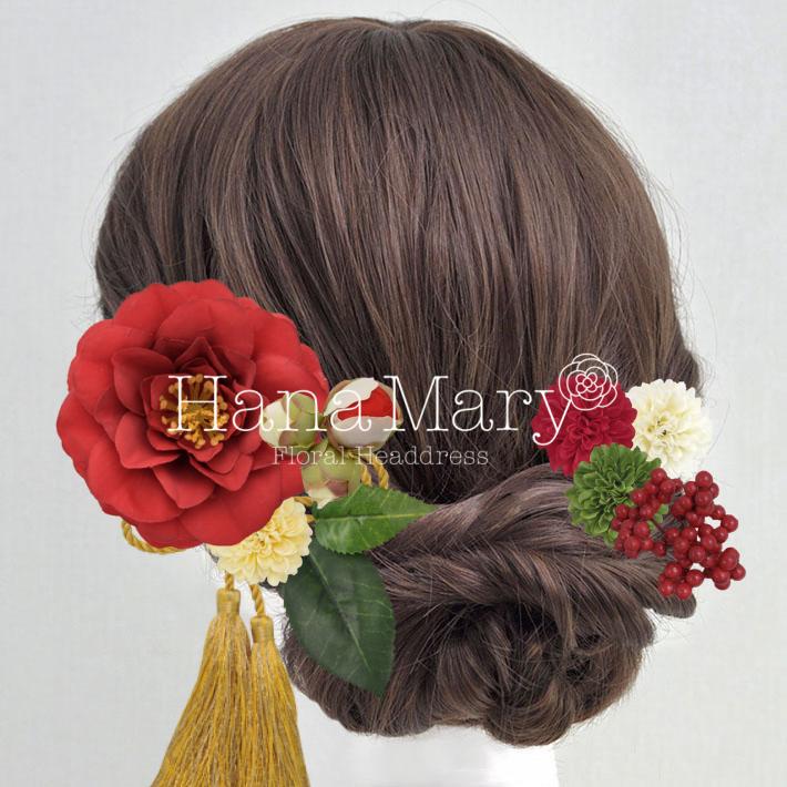 古典風 椿の髪飾り
