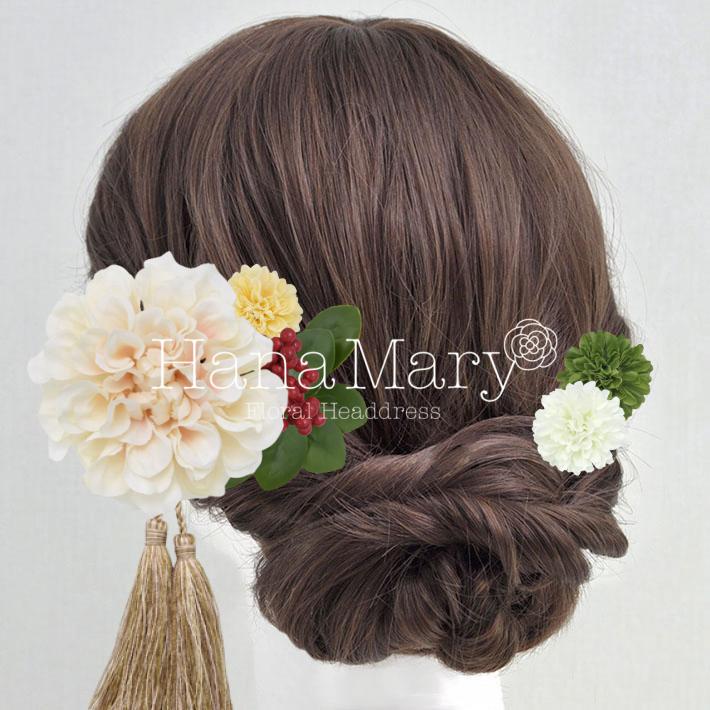 HanaMaryの髪飾りは生花をリアルに再現したアートフラワーと呼ばれるハイクオリティーな造花を使用しています。耐久性に優れ、成人式・卒業式やウェディングなどに何度でも繰り返し使用することができます。