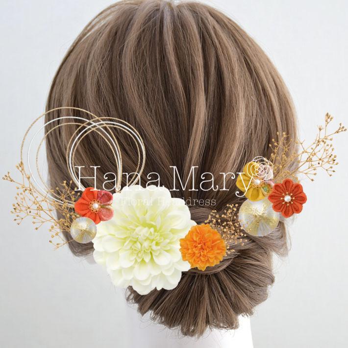 HanaMaryの髪飾りは生花をリアルに再現したアートフラワーと呼ばれるハイクオリティーな造花を使用しています。耐久性に優れ、成人式・卒業式やウェディングなどに何度でも繰り返し使用することができます。