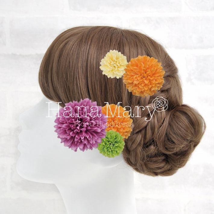 その日のヘアスタイルによって自由に一輪一輪配置できます。お花の数が多い場合でも、アメピンを追加して簡単にしっかりと固定できます。