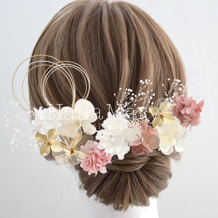 HanaMaryの髪飾りは生花をリアルに再現したアートフラワーと呼ばれるハイクオリティーな造花を使用しています。耐久性に優れ、成人式・卒業式やウェディングなどに何度でも繰り返し使用することができます。