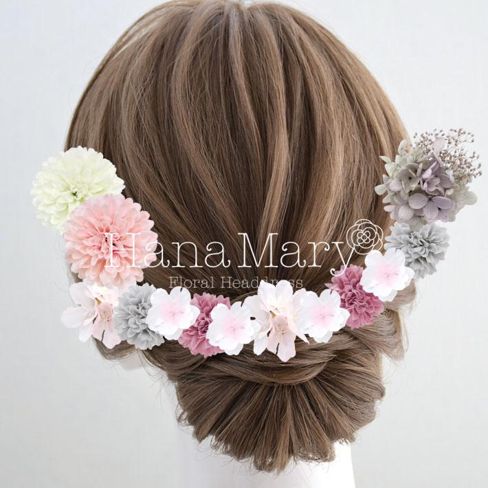 その日のヘアスタイルによって自由に一輪一輪配置できます。お花の数が多い場合でも、アメピンを追加して簡単にしっかりと固定できます。