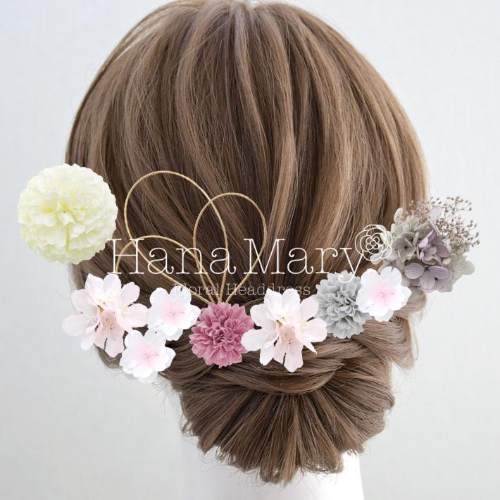 その日のヘアスタイルによって自由に一輪一輪配置できます。お花の数が多い場合でも、アメピンを追加して簡単にしっかりと固定できます。