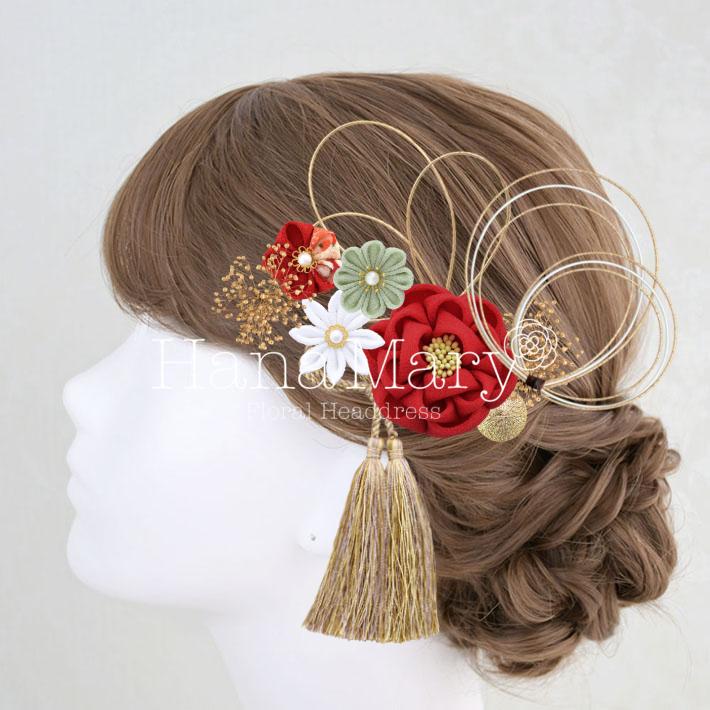 HanaMaryの髪飾りは生花をリアルに再現したアートフラワーと呼ばれるハイクオリティーな造花を使用しています。耐久性に優れ、成人式・卒業式やウェディングなどに何度でも繰り返し使用することができます。