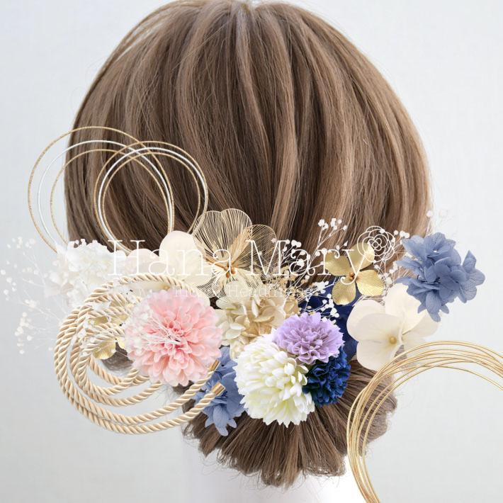 HanaMaryの髪飾りは生花をリアルに再現したアートフラワーと呼ばれるハイクオリティーな造花を使用しています。耐久性に優れ、成人式・卒業式やウェディングなどに何度でも繰り返し使用することができます。