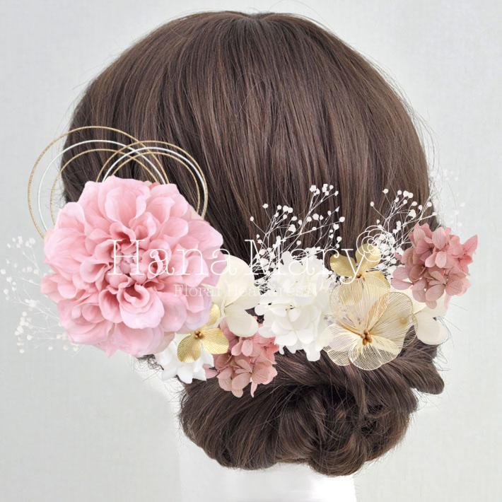 その日のヘアスタイルによって自由に一輪一輪配置できます。お花の数が多い場合でも、アメピンを追加して簡単にしっかりと固定できます。
