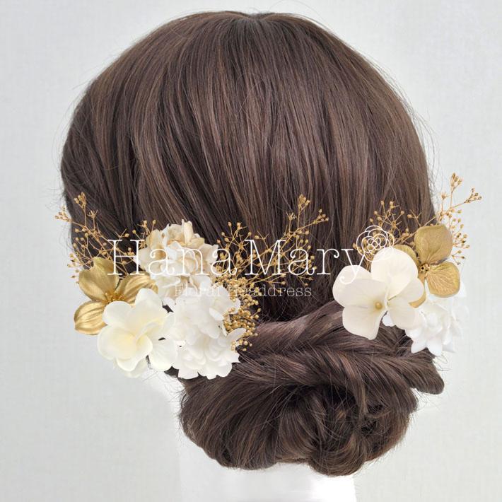 その日のヘアスタイルによって自由に一輪一輪配置できます。お花の数が多い場合でも、アメピンを追加して簡単にしっかりと固定できます。