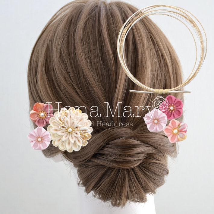 その日のヘアスタイルによって自由に一輪一輪配置できます。お花の数が多い場合でも、アメピンを追加して簡単にしっかりと固定できます。