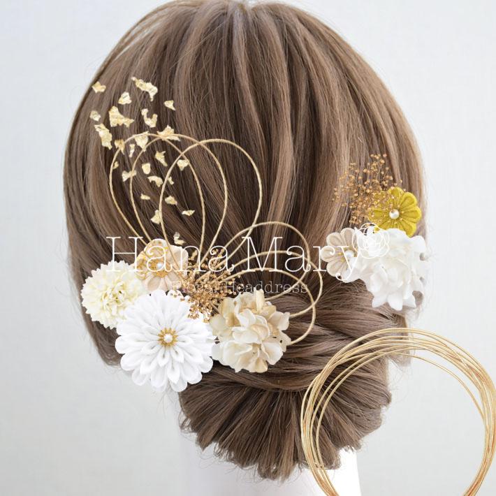 HanaMaryの髪飾りは生花をリアルに再現したアートフラワーと呼ばれるハイクオリティーな造花を使用しています。耐久性に優れ、成人式・卒業式やウェディングなどに何度でも繰り返し使用することができます。