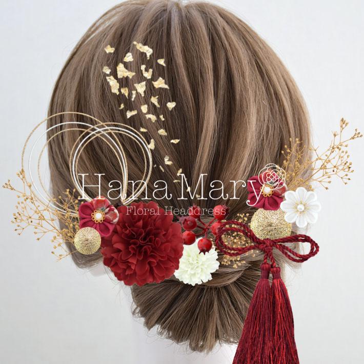HanaMaryの髪飾りは生花をリアルに再現したアートフラワーと呼ばれるハイクオリティーな造花を使用しています。耐久性に優れ、成人式・卒業式やウェディングなどに何度でも繰り返し使用することができます。