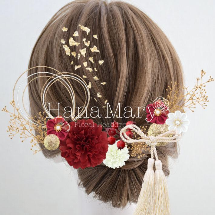 HanaMaryの髪飾りは生花をリアルに再現したアートフラワーと呼ばれるハイクオリティーな造花を使用しています。耐久性に優れ、成人式・卒業式やウェディングなどに何度でも繰り返し使用することができます。