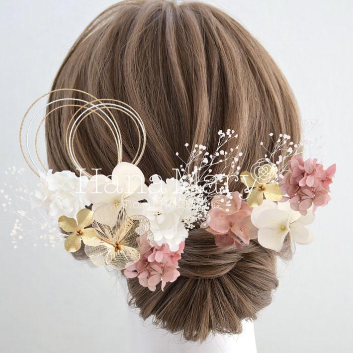 HanaMaryの髪飾りは生花をリアルに再現したアートフラワーと呼ばれるハイクオリティーな造花を使用しています。耐久性に優れ、成人式・卒業式やウェディングなどに何度でも繰り返し使用することができます。