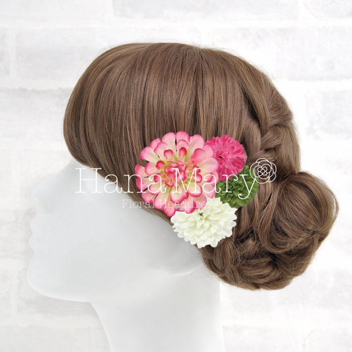 その日のヘアスタイルによって自由に一輪一輪配置できます。お花の数が多い場合でも、アメピンを追加して簡単にしっかりと固定できます。