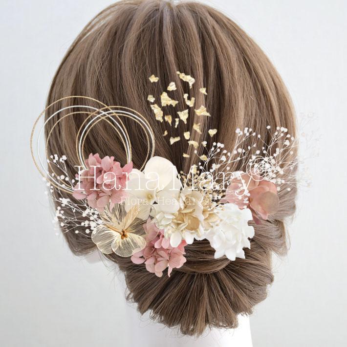 その日のヘアスタイルによって自由に一輪一輪配置できます。お花の数が多い場合でも、アメピンを追加して簡単にしっかりと固定できます。