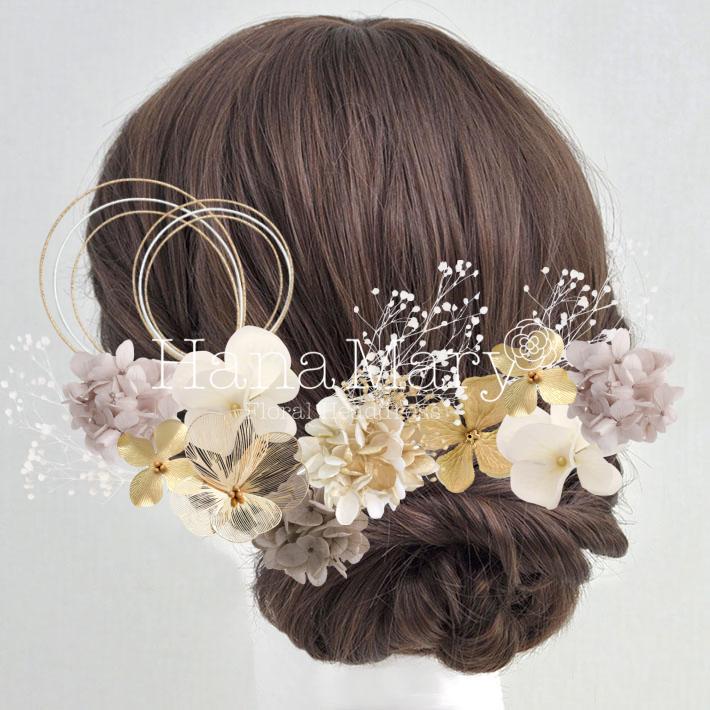 HanaMaryの髪飾りは生花をリアルに再現したアートフラワーと呼ばれるハイクオリティーな造花を使用しています。耐久性に優れ、成人式・卒業式やウェディングなどに何度でも繰り返し使用することができます。