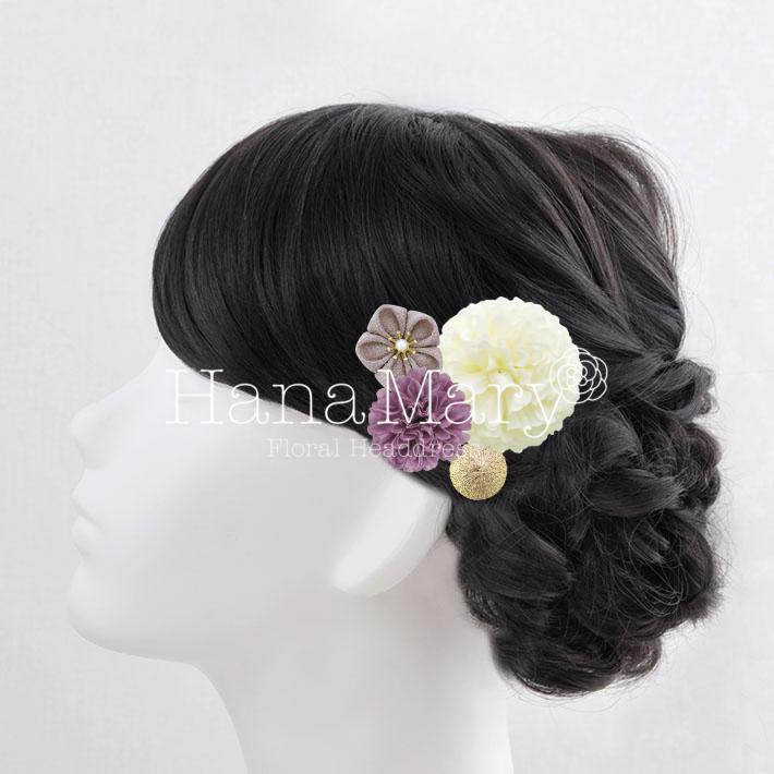 HanaMaryの髪飾りは生花をリアルに再現したアートフラワーと呼ばれるハイクオリティーな造花を使用しています。耐久性に優れ、成人式・卒業式やウェディングなどに何度でも繰り返し使用することができます。
